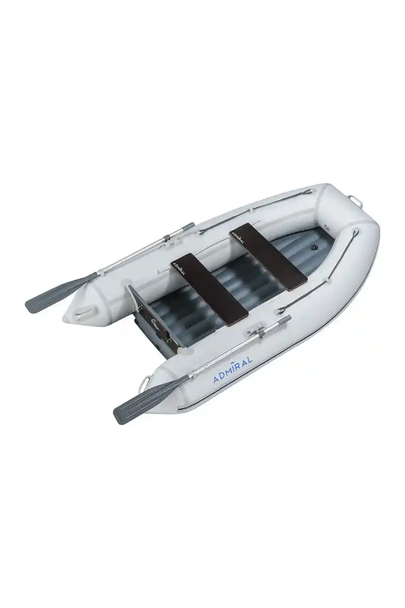 Admiral 250cm modeli 250x138 cm dış ölçüler ve 169x58 cm iç kullanım alanı sunar. 40 cm çapında 3+1 bölmeli tüp yapısı maksimum güvenlik sağlar; bir bölme hasar gördüğünde diğerleri botun yüzer durumda kalmasını garantiler. 170 kg azami taşıma kapasitesi ile 2 yetişkin ve temel ekipmanlarınızı rahatça taşıyabilirsiniz. ISO 6185-1 Tip II sertifikası ve D tasarım kategorisi ile korunaklı sularda kullanıma uygundur.