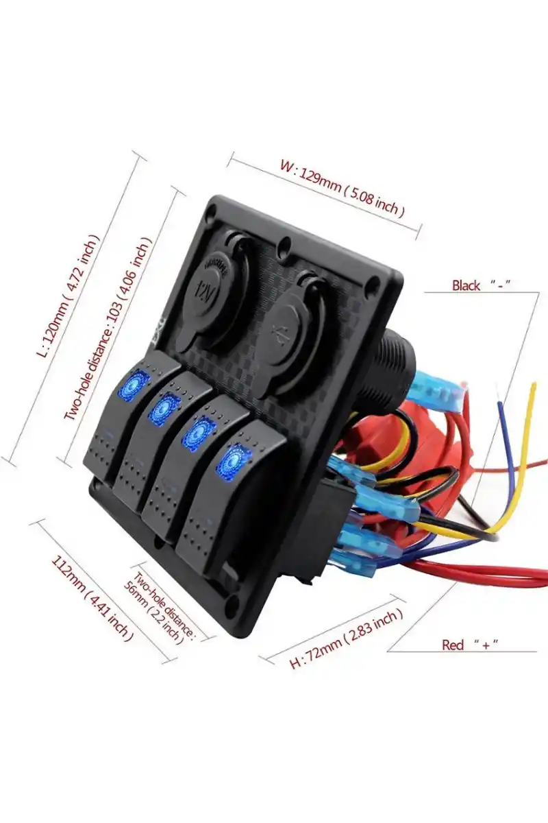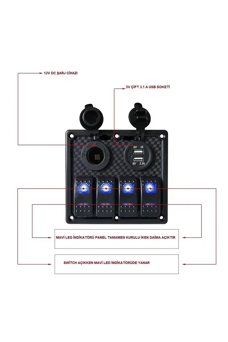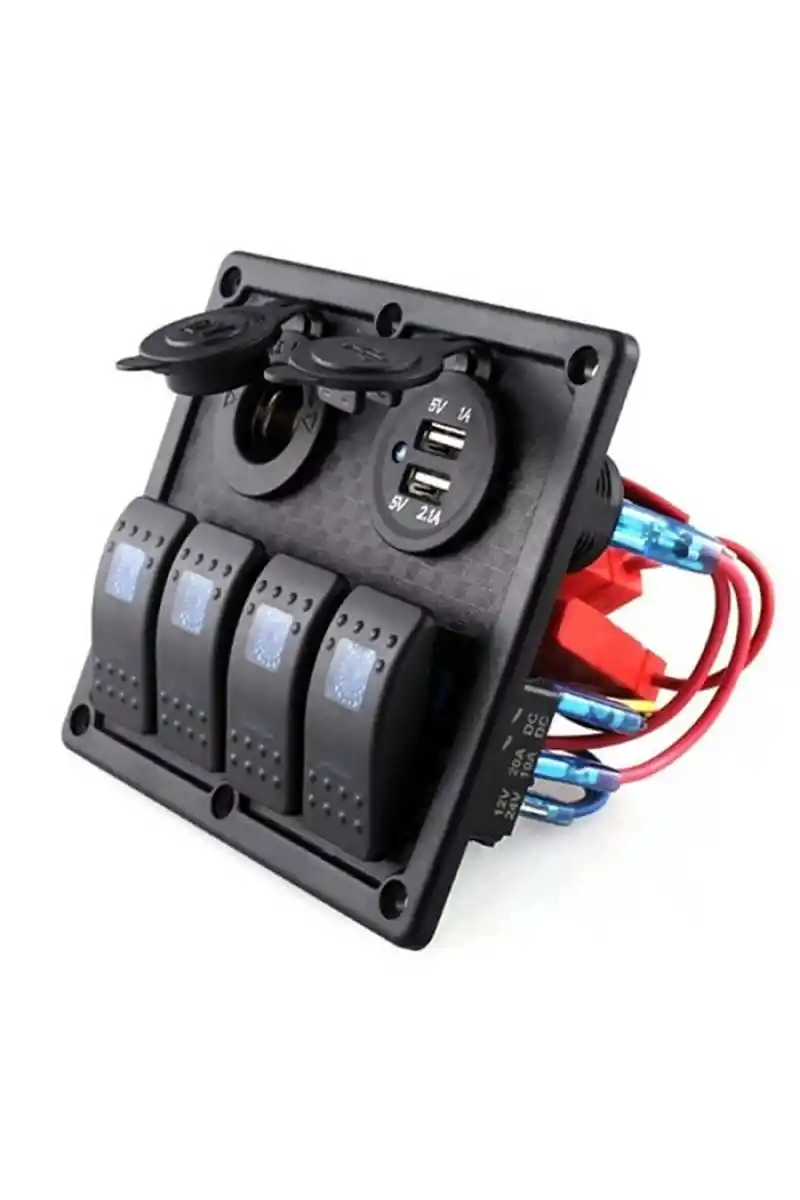 • BFY Sigortalı Switch Panel USB + 12V Çakmaklık, 4 Anahtarlı