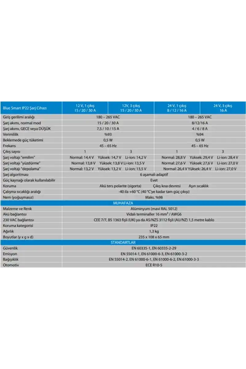 Blue Smart IP22 Charger Şarj Cihazı, tümleşik bluetooth özelliğine sahip yeni profesyonel akü şarj cihazıdır. Blue Smart IP22 Charger Şarj Cihazı, atölyenizdeki ve (klasik) otomobiller, motosikletler, botlar ve karavanlar gibi motorlu araçlardaki cihazlarınızda kullanılabilir.