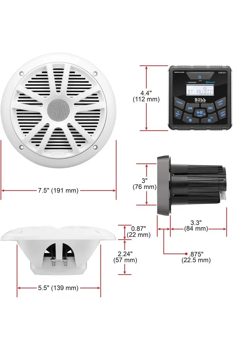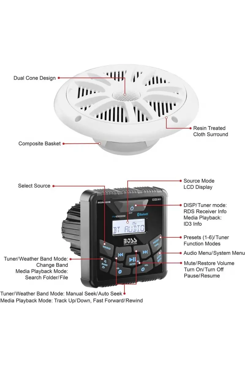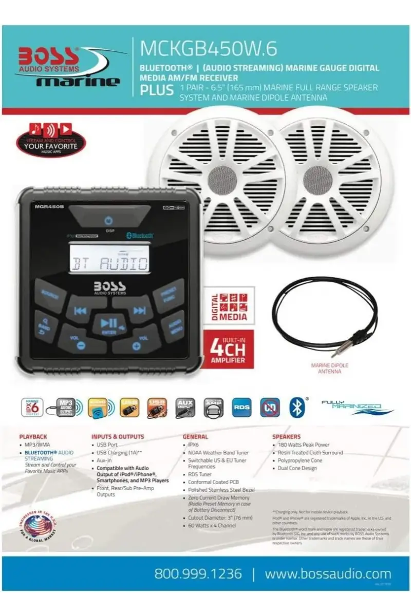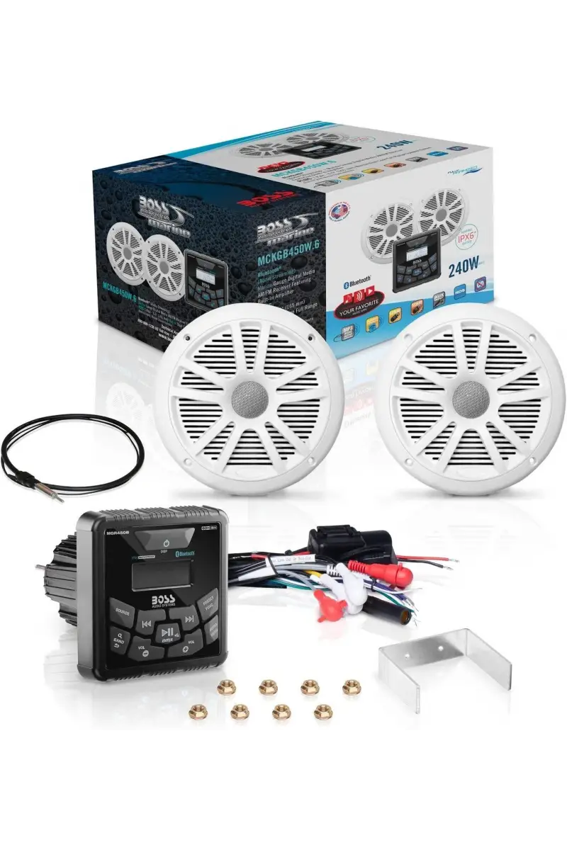 Boss Audio MCKGB450W.6 Systems Usb Aux Girişli Bluetoothlu Hoparlörlü Marin Teyp Seti