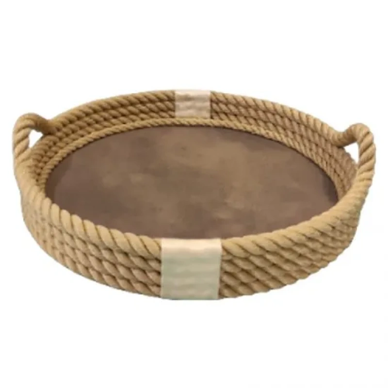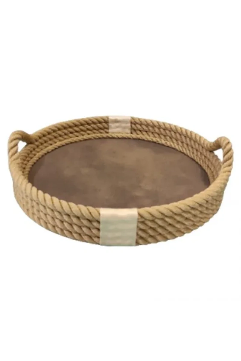 CaptainRA Deri Tabanlı Tepsi (Yuvarlak) Krem