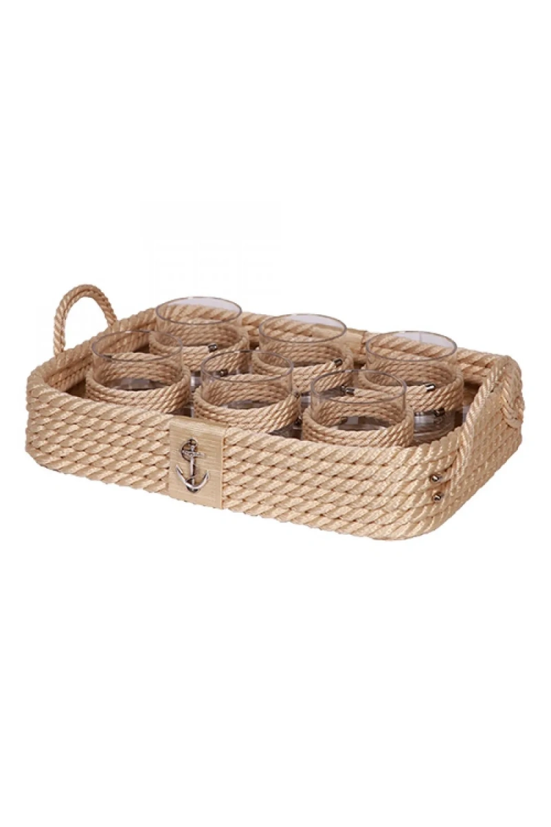 CaptainRA Viski Bardaklı Tepsi Bej
