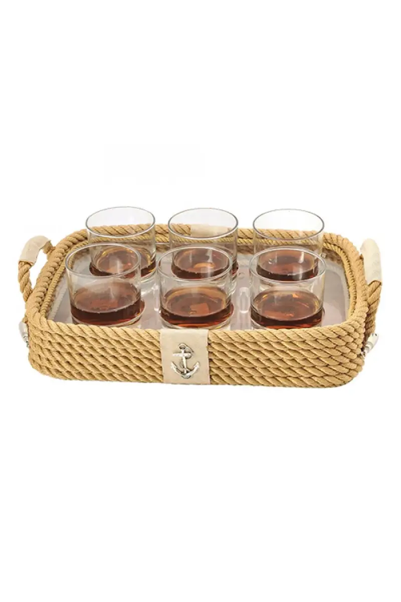 CaptainRA Viski Bardaklı Tepsi Krem
