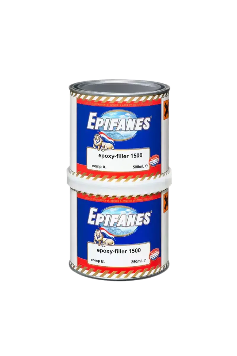 Epoksi Dolgu 1500, çelik ve fiberglas üzerindeki küçük onarımlar için ideal olan, hızlı kuruyan ve iki bileşenli bir dolgu malzemesidir. Aynı zamanda kalın katlar halinde işlem gerçekleştirmeye uygun. Tüm Epifanes tek ve çift komponentli ürünlerle tekrar kaplanabilir.