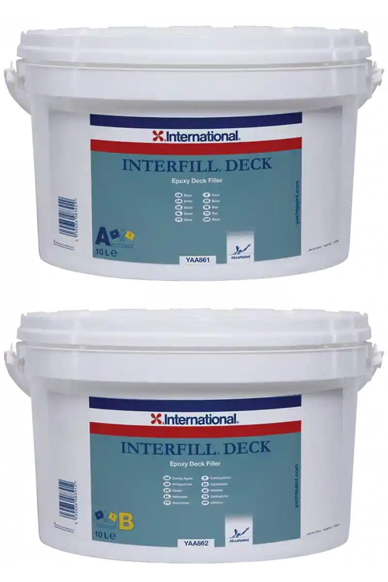 Interfill Deck, Tik Güverte ,Teak Deck sisteminin uygulanması öncesinde güverte yüzeyini pürüzsüz hale getirmek için, önceden astarlanmış alüminyum, çelik ve GRP güverte yüzeyleri üzerinde kullanıma yönelik özel olarak formüle edilmiş hafif bir epoksi dolgu macunudur.