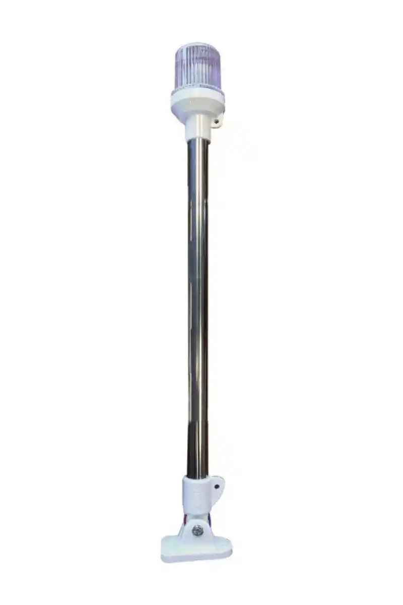 50 cm uzunluğunda paslanmaz çelik gövdesi, tuzlu deniz suyuna karşı korozyon direnci gösterir. 12V DC sistem ile çalışan ampül ünitesi, tekne aküsüne doğrudan bağlanır ve standart anahtarlama devreleri ile kontrol edilebilir. Direk çapı standart bayrak gönderleme sistemleri ile uyumludur; kompakt boyutu 6-15 metre arası teknelerde kıç veya baş direği olarak kullanıma uygundur.