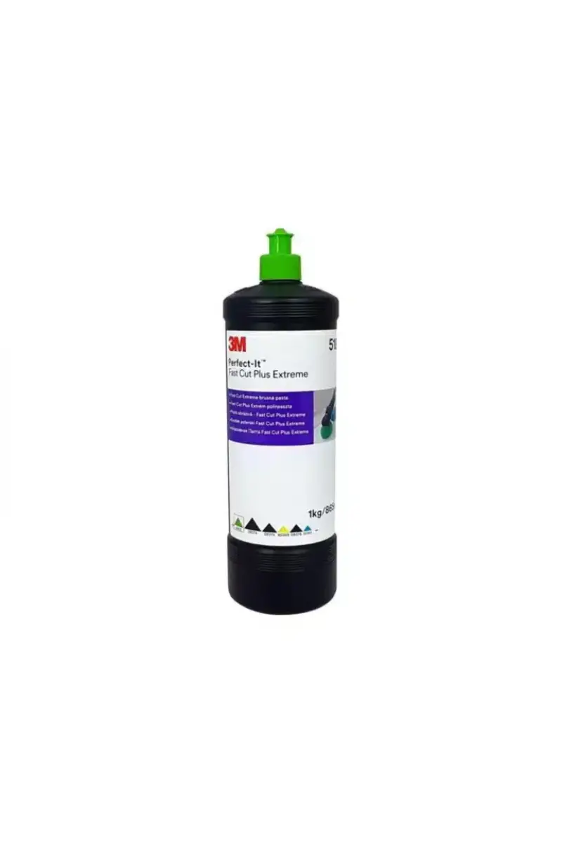 3M™ 51815 Perfect-It™ Fast Cut Plus Extreme Pasta, 3M 260L P1500 ve ardından Trizact 3000 ile düzleştirme veya sivri uç giderme işleminden sonra zımpara çiziklerini hızla gidermek ve hem taze hem de eski tekne,araba boyasında yüksek parlaklık elde etmek için tasarlanmış hızlı kesen, aşındırıcı bir sıvı pastadır. 3M™'nin renk kodlu pasta serisinden yeşil bir ped ile donatılmış döner veya dairesel parlatıcı ile kullanın. 3M™ Perfect-It™ Fast Cut Plus Extreme Pasta ürünümüz, oksidasyon, yüzey çizikleri, oto yıkama çizikleri vb. gibi her türlü boya düzeltme veya restorasyon çalışması için tasarlanmış, ödüllü renk kodlu pastaların en yeni neslidir. Üstün parlaklıkta bir finisaj sağlar. Ambalaj : 1 kg