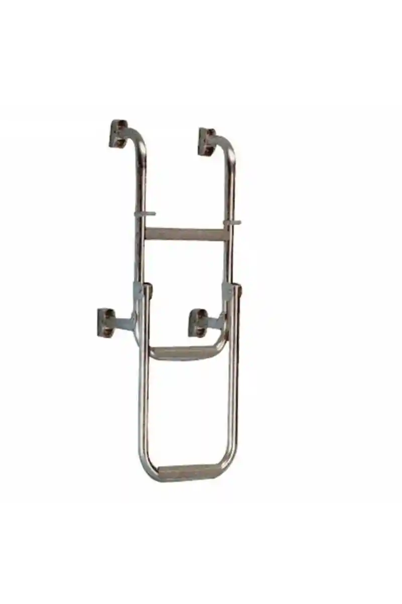 Krom Katlanır Merdiven 2+1 Basamaklı, tekne platformundan suya güvenli iniş çıkış sağlayan paslanmaz krom kaplı katlanabilir yüzme merdivenidir. Fiber tekneler, motoryatlar ve yelkenlilerin kıç platformlarına montaj için tasarlanmış olup, kullanılmadığında minimal yer kaplayacak şekilde katlanır yapıdadır.
