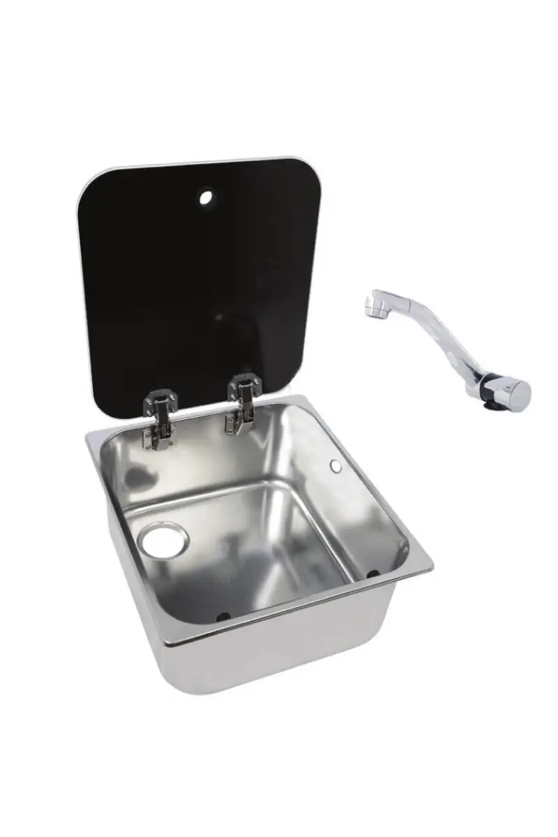 Cam kapaklı tasarım sayesinde evye kullanılmadığında üzeri kapatılarak ekstra tezgah alanı kazanılır; yemek hazırlığı, doğrama veya servis için ideal. Navy Load paslanmaz çelik yüzeyi deniz suyuna dayanıklıdır ancak uzun ömür için tuzlu su temasından sonra tatlı suyla durulama önerilir. Montaj öncesi tezgah kesim ölçülerini kontrol edin; standart galley tezgahlarına uyumludur. Cam kapak menteşeleri periyodik olarak yağlanmalı, sızdırmazlık contaları yılda bir kez kontrol edilmelidir.