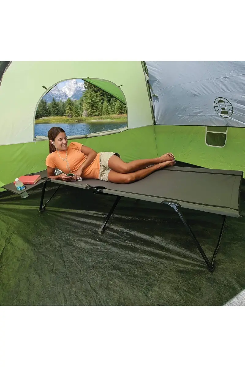 Coleman® Pack-Away Kamp Yatağı ile konforu ve kampı yepyeni bir seviyeye taşıyın. Kurulum gerektirmeyen kolayca açılır dayanıklı çelik çapraz çubuklu gövdesi, ekstra geniş tasarım ve 136,10 kg taşıma kapasiteli Coleman® Packaway Yatak ile ister güneşli bir günde güneşin tadını çıkarın rahatça dinlenin ister soğuk zeminde uykusuz gecelerden kurtulmanın zevkini yaşayın. Ayrıca siz uyurken ya da dinlenirken kolayca ulaşmak isteyebileceğiniz fener, telefon, atıştırmalık gibi kişisel eşyalara ya da içeceğinize kolayca erişebilmenize olanak sağlayan çıkarılabilir bardak tutuculu yan sehpasını tercihinize göre yatağın sağ ya da sol tarafına takılabilir.