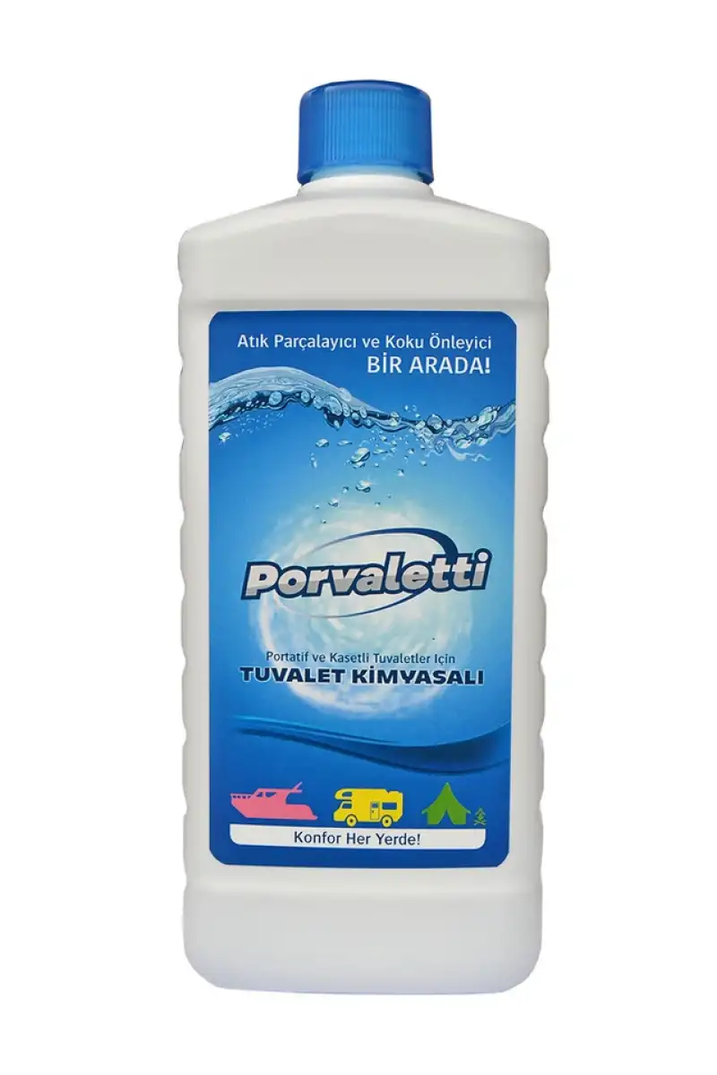 Portatif ve kasetli tuvaletlerde tuvalet kimyasalı olarak kullanılır. Kamp ve karavanda kullanılan portatif ve kasetli tuvaletlerin atık su tankları nasıl temizlenir? Porvaletti Tuvalet Kimyasalı, portatif ve kasetli tuvaletlerin atık su tanklarında; atıkların parçalanmasını ve tankın kolay temizlenmesini sağlayan tuvalet kimyasalıdır. Tanktaki kötü kokuları ortadan kaldırır. Evlerde kullanılan hasta tuvaletlerinin atık su tanklarında da kullanılır.