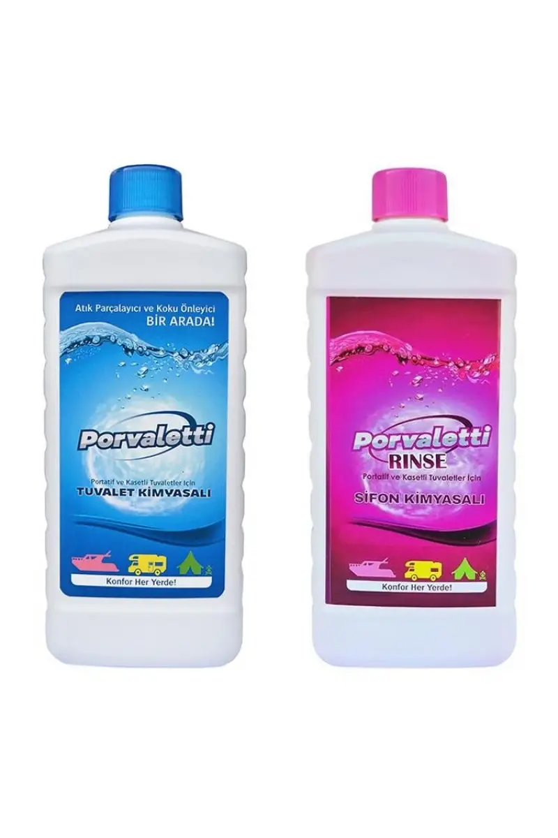Portatif ve kasetli tuvaletlerde tuvalet kimyasalı olarak kullanılır. Kamp ve karavanda kullanılan portatif ve kasetli tuvaletlerin atık su tankları nasıl temizlenir? Porvaletti Tuvalet Kimyasalı, portatif ve kasetli tuvaletlerin atık su tanklarında; atıkların parçalanmasını ve tankın kolay temizlenmesini sağlayan tuvalet kimyasalıdır. Tanktaki kötü kokuları ortadan kaldırır. Evlerde kullanılan hasta tuvaletlerinin atık su tanklarında da kullanılır.