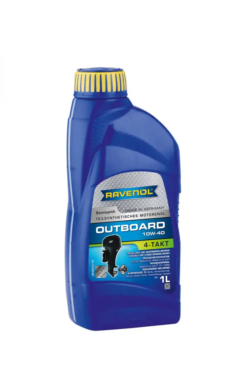 RAVENOL Outboardoel 4T SAE 10W-40 , NMMA FC-W ve NMMA FC-W (CAT) uyarınca enjeksiyonlu 4 zamanlı dıştan takma motorlar için özel bir formülasyona sahip yarı sentetik bir motor yağıdır.