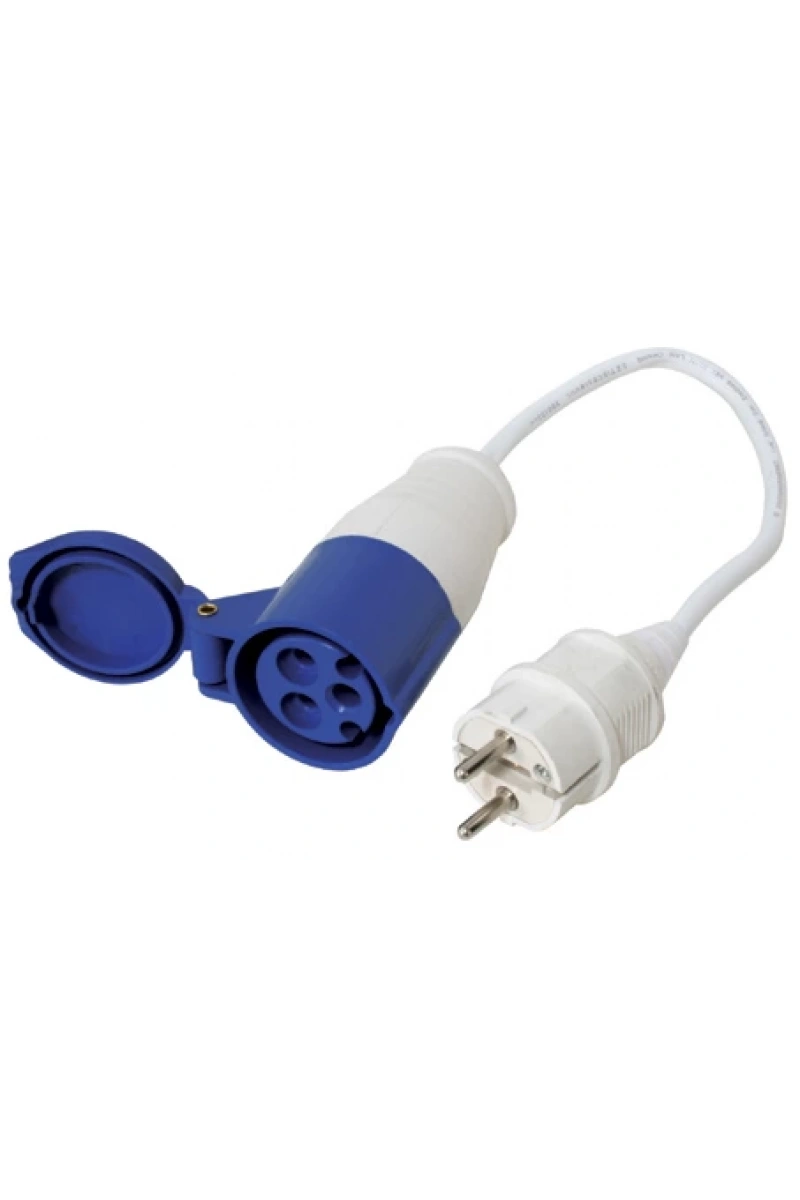 Dişi fişli 16A ve Schuko konnektörlü 16A, 220-240V, 30cm kablo, Mavi Kablo Seti