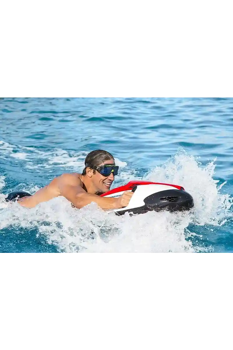 Rahat kayma. Sudaki sportif sürüş. Güvenli bir şekilde derinlere dalma. SEABOB ile mümkün. İlk kez bir insan, suda bir yunus gibi çevik hareket edebilir. Su üstünde ve su altında özgürlük.