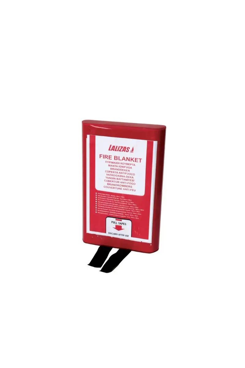 Yangın battaniyeleri, mutfak gibi yüksek riskli alanlarda çok önemlidir. Mevcut modeller 100x100 cm ve 120x180 cm'dir ve üstünde talimatlar yazılı olan sert bir kutuda teslim edilir. EN 1869'a göre.